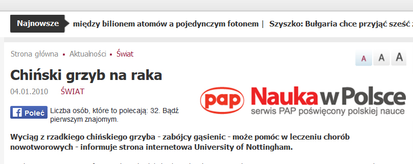 Media o Kordicepsie